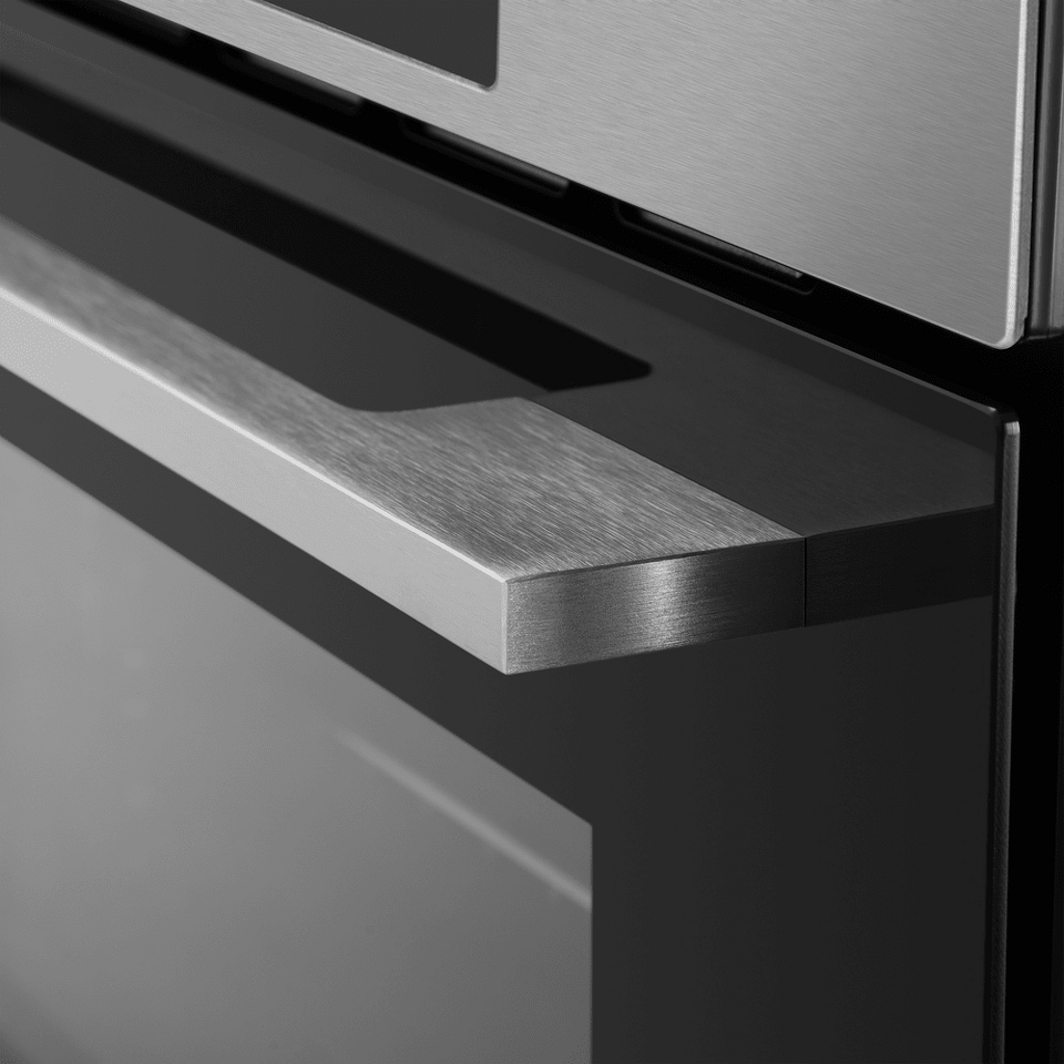 Фронтальная панель сделана из высококачественного жаропрочного стекла . Цельнометаллическая ручка дверцы из матированной нержавеющей стали лаконично поддерживает общий стиль и не нагревается во время готовки.