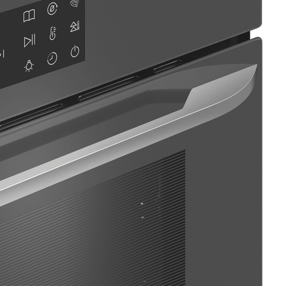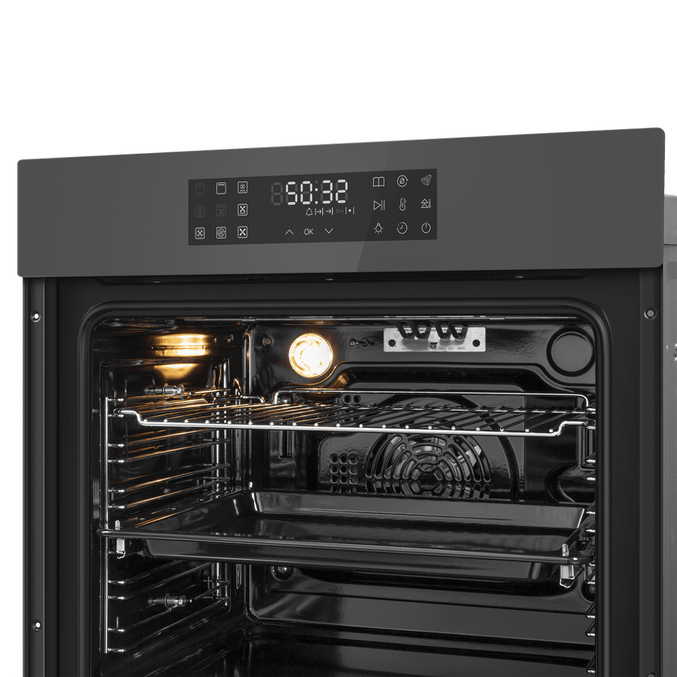 Объем 76 л при стандартных размерах 60 см позволяет готовить одновременно несколько блюд, разместив решетку или противень на одном из 6 уровней боковых направляющих. Два уровня оснащены удобными телескопическими направляющими. Внутреннее покрытие камеры выполнено из специальной легкоочищающейся эмали черного цвета.