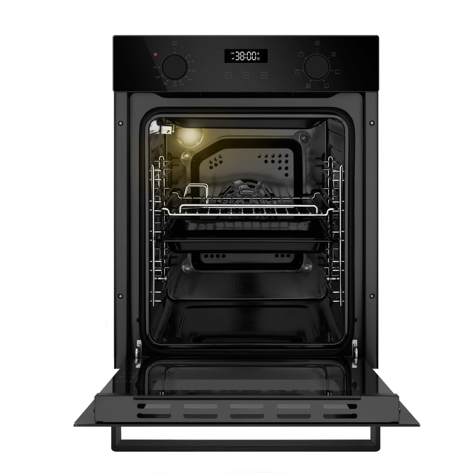 Компактный электрический встраиваемый духовой шкаф объемом 51 л и шириной всего 45 см позволяет готовить ваши любимые блюда, разместив решетку или противень на одном из 5 уровней боковых направляющих. Внутреннее покрытие камеры выполнено из специальной легкоочищающейся эмали черного цвета.