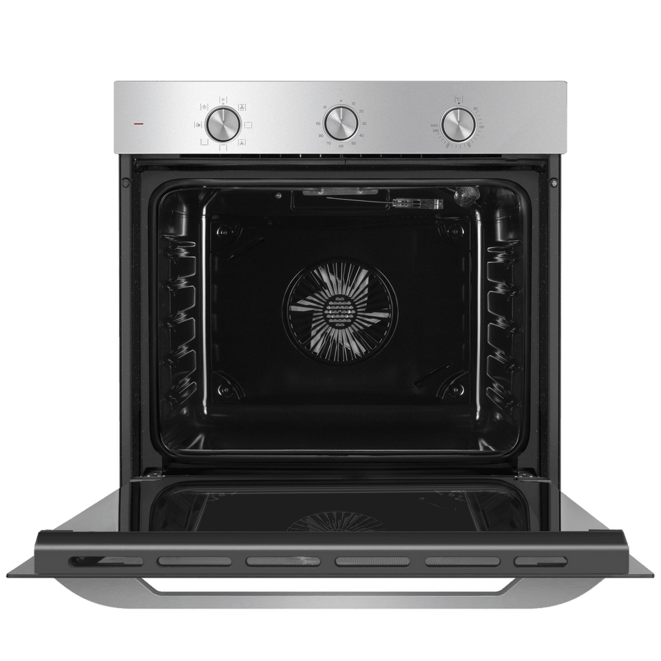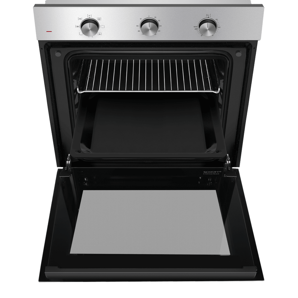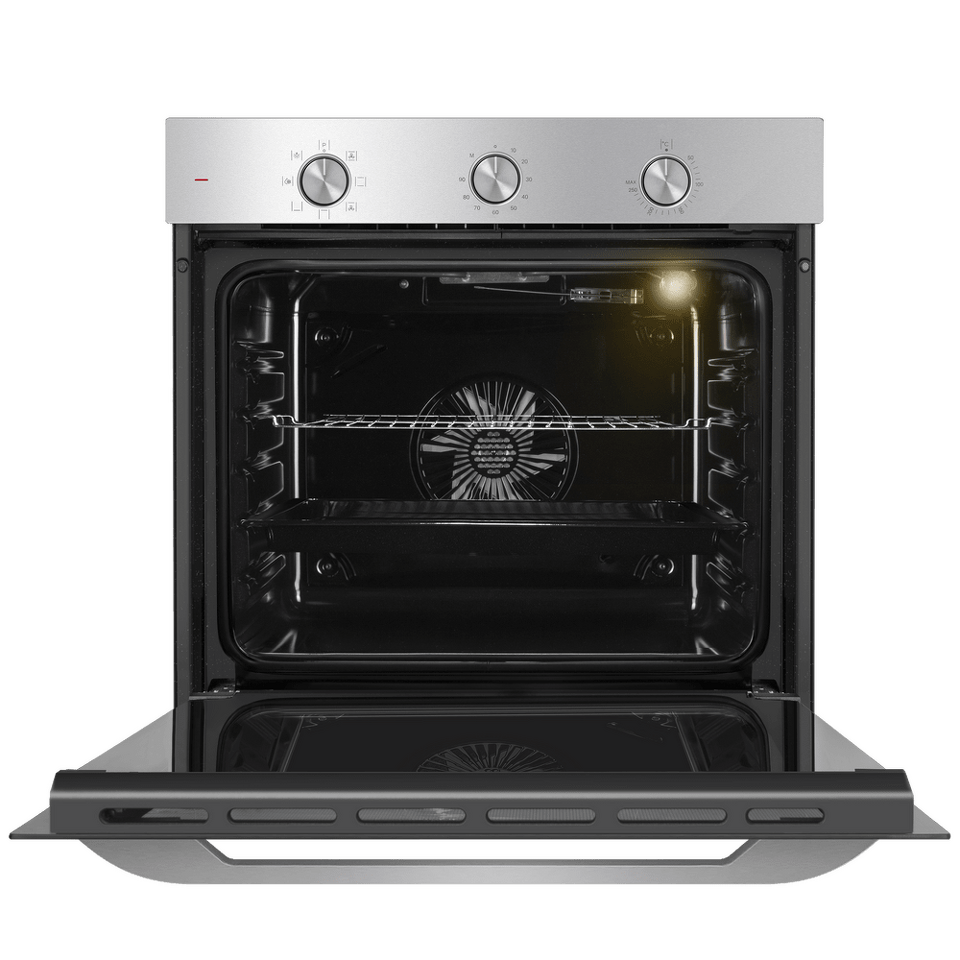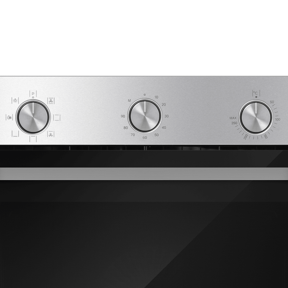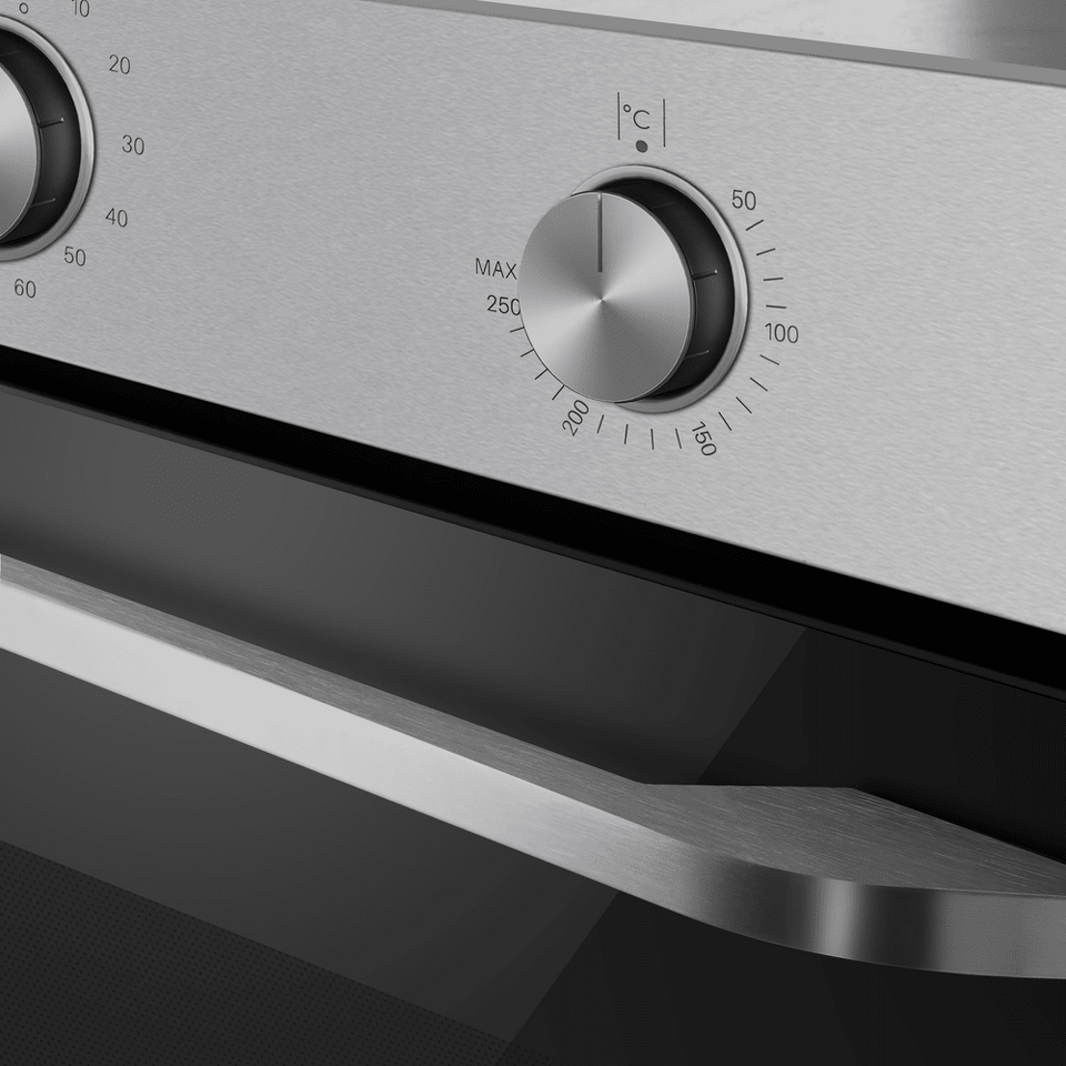 Управлять духовкой просто – механические переключатели с утапливаемыми ручками надежны и интуитивно понятны. Встроенный таймер поможет не пропустить момент готовности блюда. А когда нужно проверить, как идёт процесс, достаточно бросить взгляд через тройное стекло дверцы – мощная подсветка прекрасно освещает всю камеру.