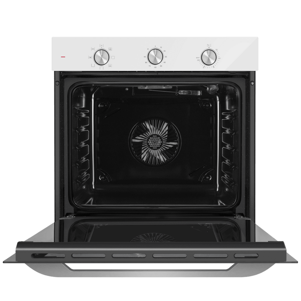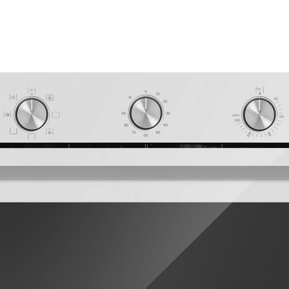 Управлять духовкой просто – механические переключатели с утапливаемыми ручками надежны и интуитивно понятны. Встроенный таймер поможет не пропустить момент готовности блюда. А когда нужно проверить, как идёт процесс, достаточно бросить взгляд через тройное стекло дверцы – мощная подсветка прекрасно освещает всю камеру.