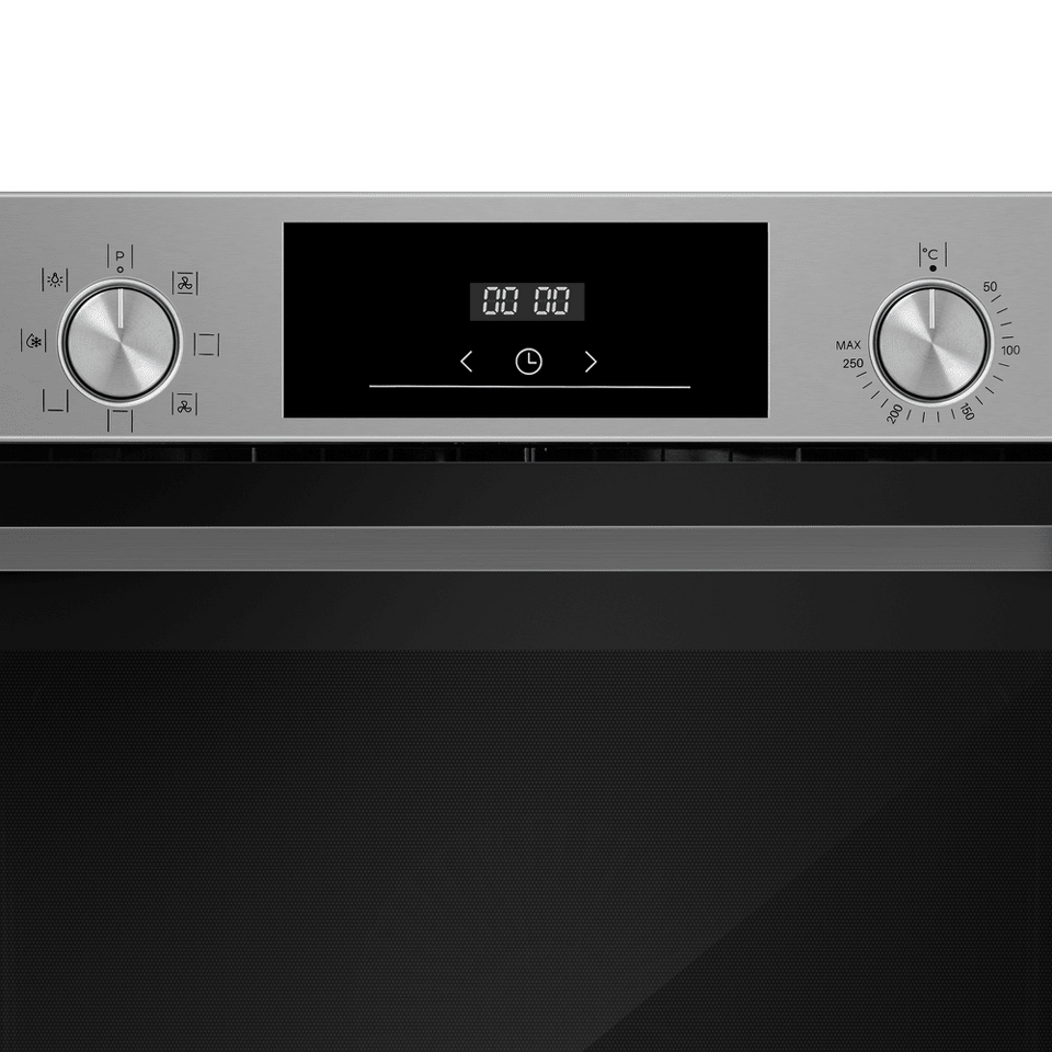 Управлять духовкой просто – механические утапливаемые переключатели в сочетании с современным сенсорным управлением обеспечивают комфортную и наиболее точную регулировку параметров приготовления. Встроенный таймер поможет не пропустить момент готовности блюда. А когда нужно проверить, как идёт процесс, достаточно бросить взгляд через тройное стекло дверцы – мощная подсветка прекрасно освещает всю камеру.