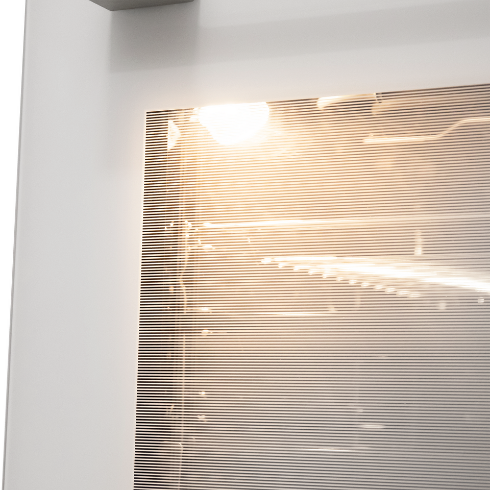 Трамп-линии на внутреннем стекле дверцы создают визуальный эффект непрозрачности фасада: при выключенном освещении не видно посуду, находящуюся внутри духовой камеры, а при включенном освещении можно в деталях рассмотреть весь процесс готовки.