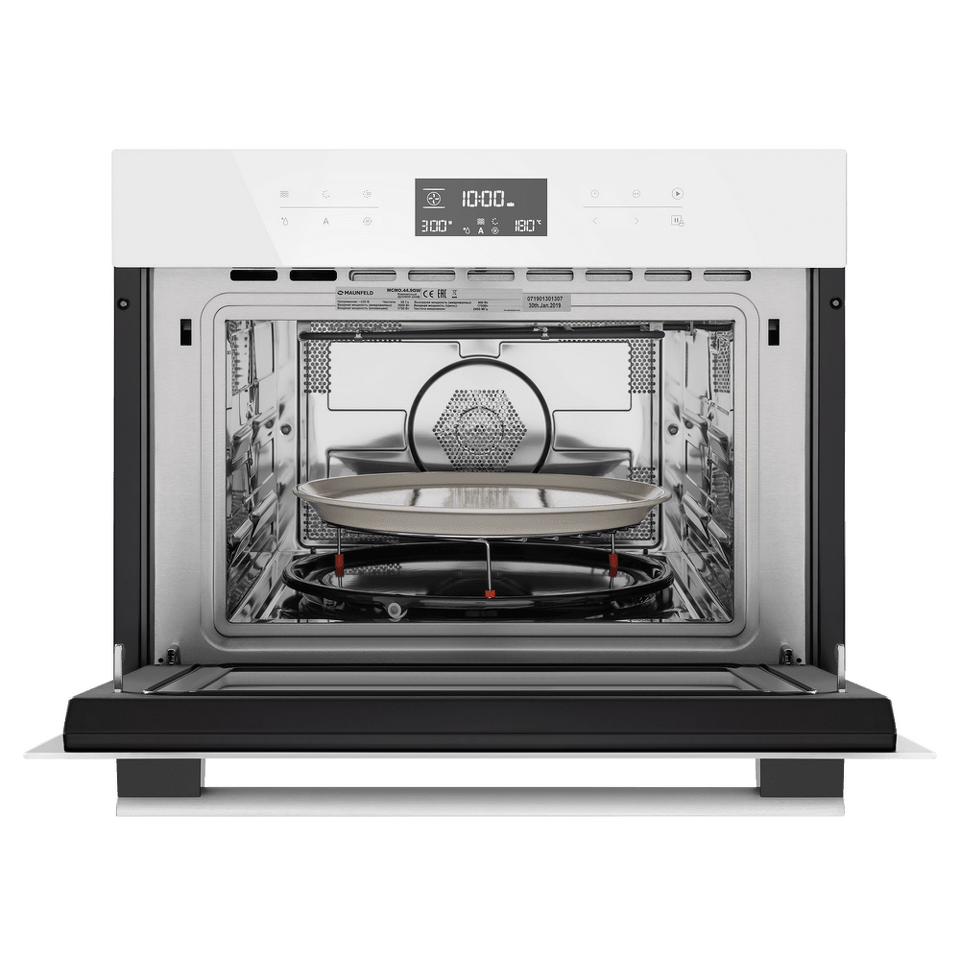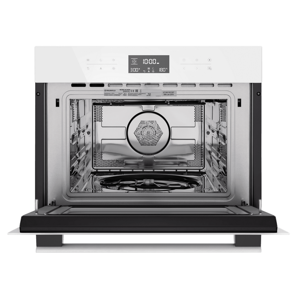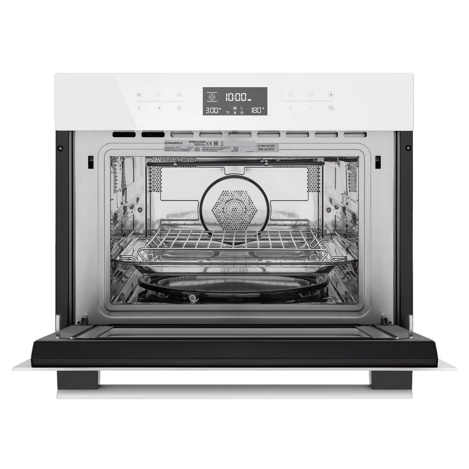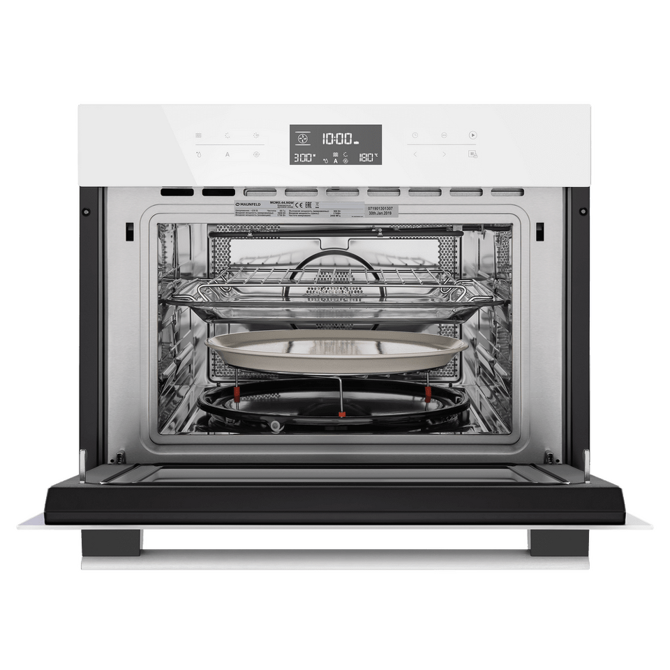 Сенсорное управление с дисплеем COLD WHITE позволит выбрать режим работы, температуру (50°-230°C), установить таймер и блокировку от детей. В данной модели предусмотрены следующие режимы работы: горячий воздух, горячий воздух и нижний нагрев, гриль (имеет 3 режима мощности), гриль+конвекция, горячий воздух + нижний гриль, микроволны, микроволны комби; автоматическая разморозка; предварительный разогрев, 13-программное Авто-меню.