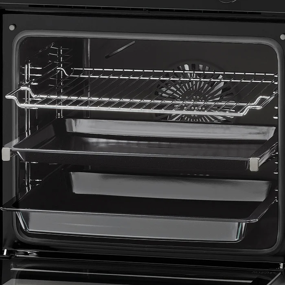 Электрический духовой шкаф NERO max 60 современном дизайне Total Black выполнен из термостойкого стекла и дополнен изящными стеклянными регуляторами и ручкой. Модель оснащена удобным управлением с утапливаемыми регуляторами, сенсорным дисплеем и современной индикацией режимов работы. Духовой шкаф шириной встраивания 60 см, имеет полезный объем Extra Large - 78 литров, благодаря которому вы без проблем сможете готовить большое количество порций на нескольких уровнях. Дверца выполнена из закаленного стекла Schott Ceran и имеет усиленную теплоизоляцию LOW-E, благодаря которой минимизирован нагрев внешней части духового шкафа. NERO max 60 оснащен грилем, 3D-конвекцией, функцией разморозки и 9 режимами работы с автоматической преднастройкой температуры нагрева для каждого из них. Также температуру нагрева можно отрегулировать в ручную в диапазоне 40-250/300°С. Для вашего удобства в духовом шкафу предусмотрены: удобный электронный таймер с функциями напоминания/включения/отключения; телескопические направляющие на одном уровне, которые обеспечат легкий доступ к блюду во время приготовления; доводчик плавного закрытия дверцы Soft Close; а также каталитическая панель на задней стенке, которая обеспечит максимально простой уход за духовым шкафом.