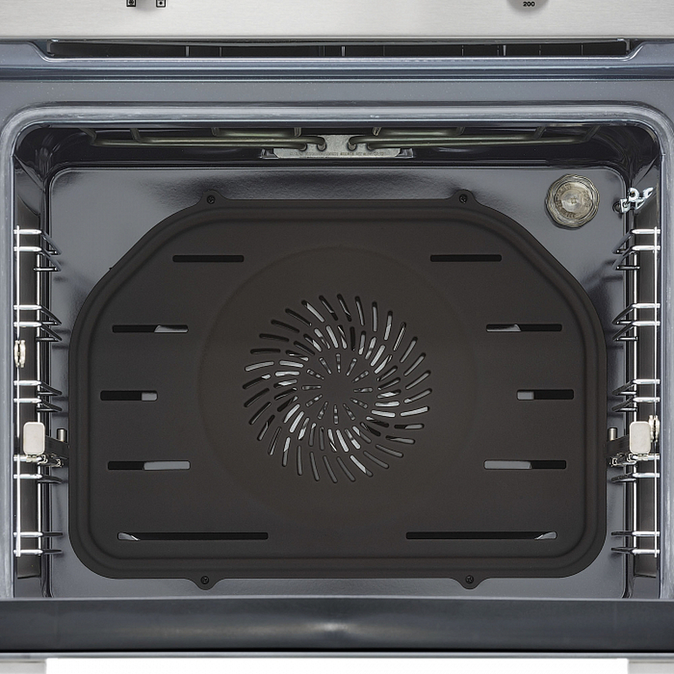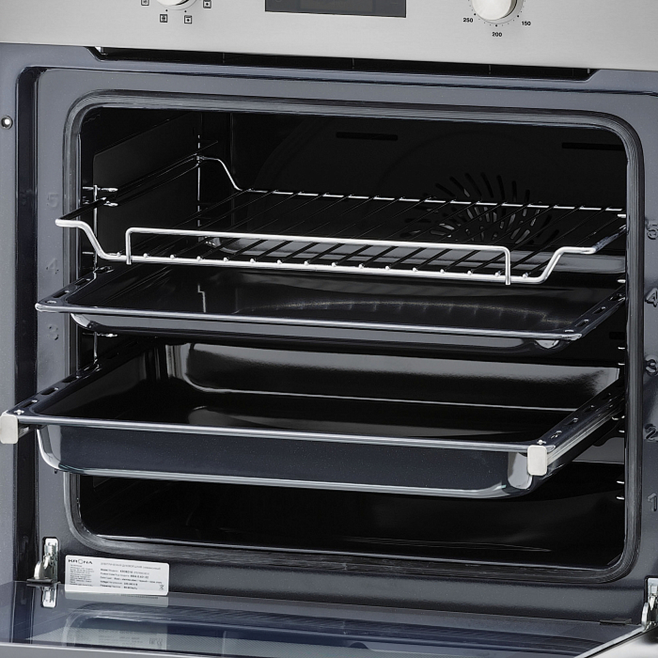 Электрический духовой шкаф STEFANO шириной встраивания 60 см выполнен из черного закаленного стекла в сочетании с нержавеющей сталью, что отлично дополнит кухонные интерьеры в современных стилях, от скандинавского до хай-тек. Полезный объем духовки составляет 66 л, благодаря чему можно готовить несколько блюд на разных уровнях одновременно. Модель оснащена 8 режимами работы, включая 3D-конвекцию, предварительный разогрев и электрический гриль. Разнообразие программ и широкий диапазон температур нагрева 50-310°С позволяют воплотить самые смелые кулинарные идеи. Для вашего удобства модель предусматривает телескопические направляющие на 1-ом уровне, сенсорный дисплей с электронным таймером и часами, а также неприхотливые в уходе утапливаемые регуляторы. Духовой шкаф STEFANO оборудован функцией очистки паром Aqua Clean и каталитическими панелями на задней и боковых стенках, что делает очистку камеры от жира и нагара намного проще и быстрей. В базовую комплектацию модели входят стандартный и глубокий противни, решетка для гриля, а также монтажные элементы.