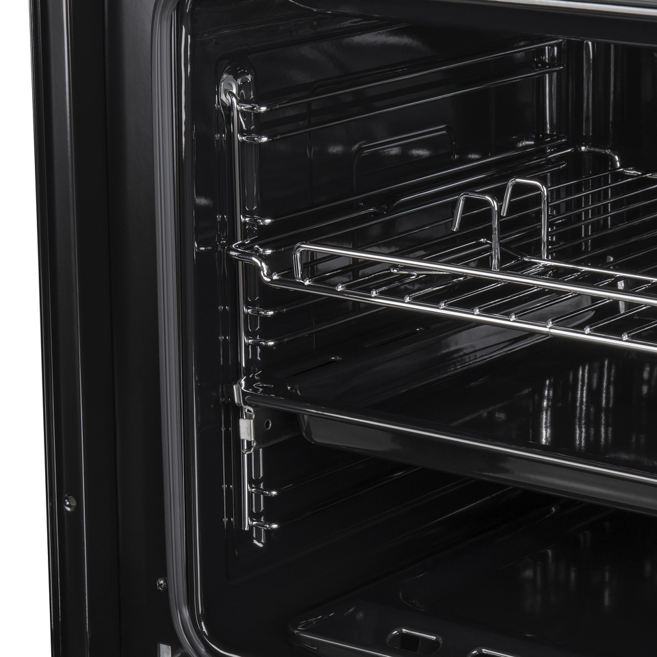 Объем 60 л при стандартной ширине 60 см позволяет готовить одновременно несколько блюд, разместив решетку или противень на одном из 5-ти уровней боковых направляющих. Один уровень оснащен удобными телескопическими направляющими. Внутреннее покрытие камеры выполнено из специальной легкоочищающейся эмали черного цвета.