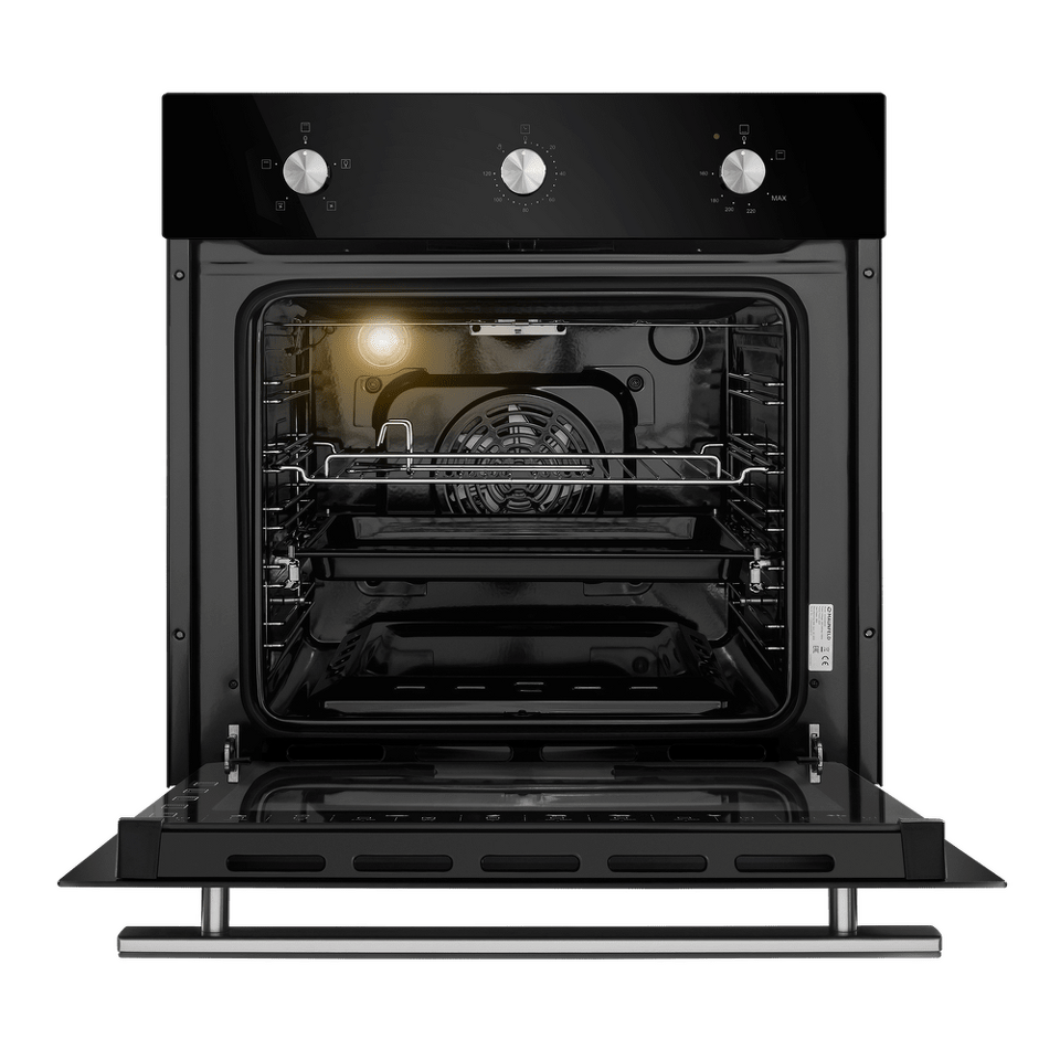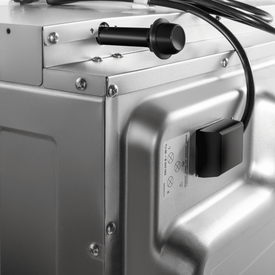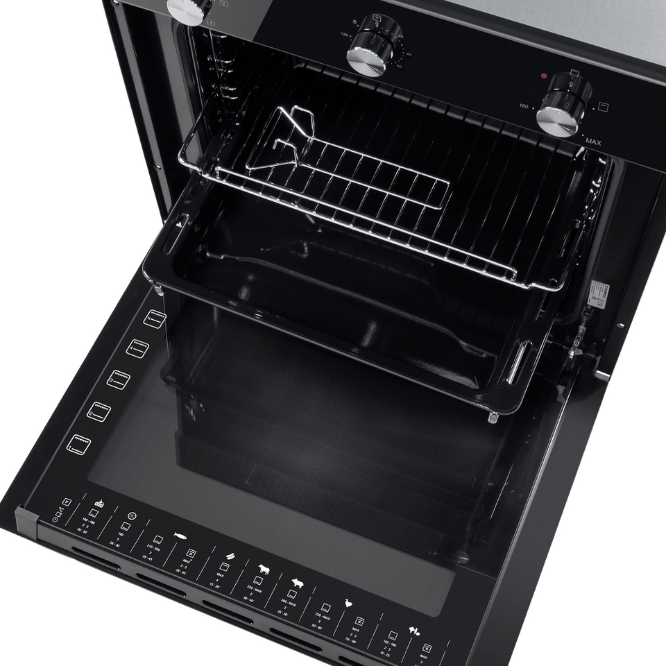 Объем 60 л при стандартной ширине 60 см позволяет готовить одновременно несколько блюд, разместив решетку или противень на одном из 5-ти уровней боковых направляющих. Один уровень оснащен удобными телескопическими направляющими. Внутреннее покрытие камеры выполнено из специальной легкоочищающейся эмали черного цвета.