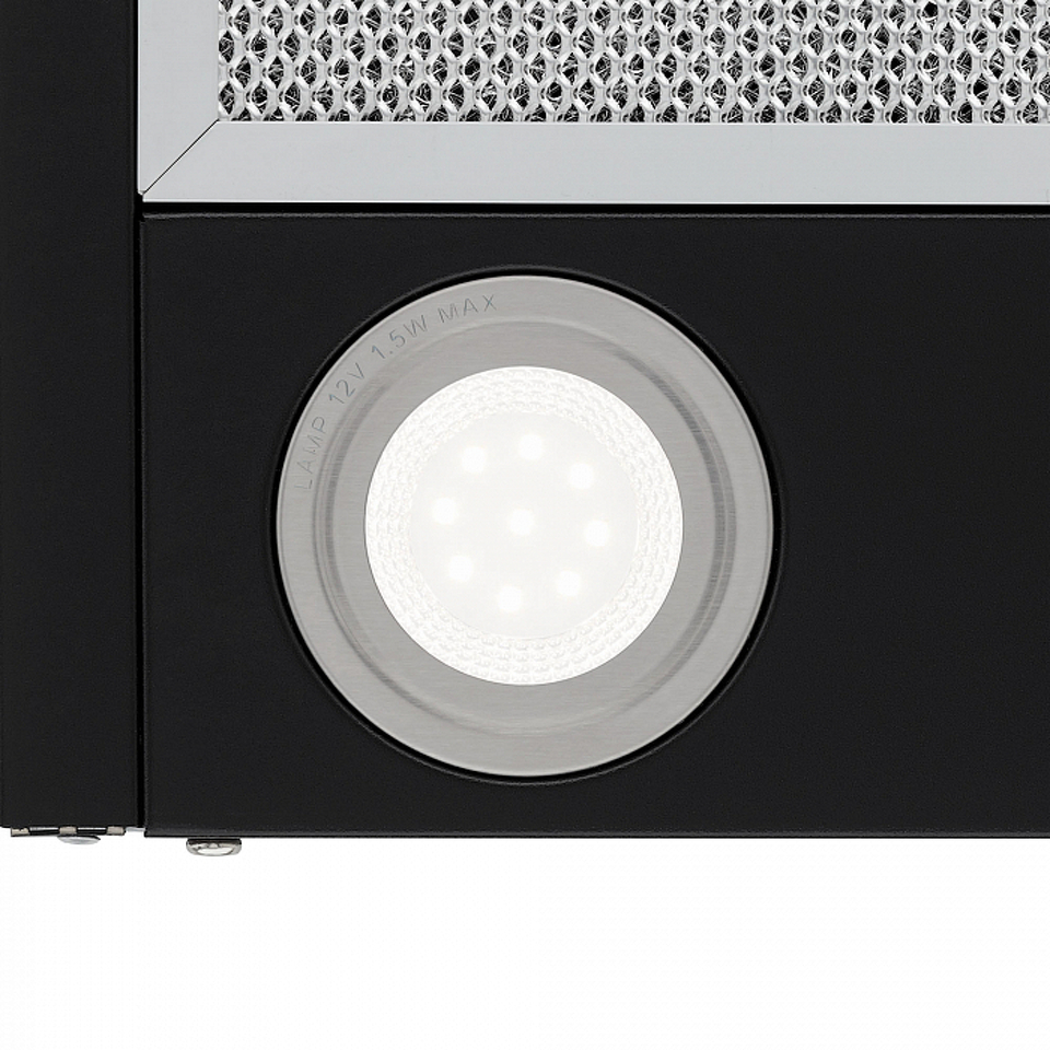 Наклонная вытяжка Domenika, находка для любителей различных современных фишек в кухонном интерьере. Передняя панель вытяжки выполнена из матового стекла, на котором можно оставлять записи, любимые рецепты, красивые рисунки меловым маркером. Модель обладает мощным мотором и производительностью 1000 куб.м., что позволяет очищать воздух на кухне площадью до 20 кв.м. LED-лампы не только радуют глаз, но и экономят электроэнергию,в отличие от других ламп освещения.