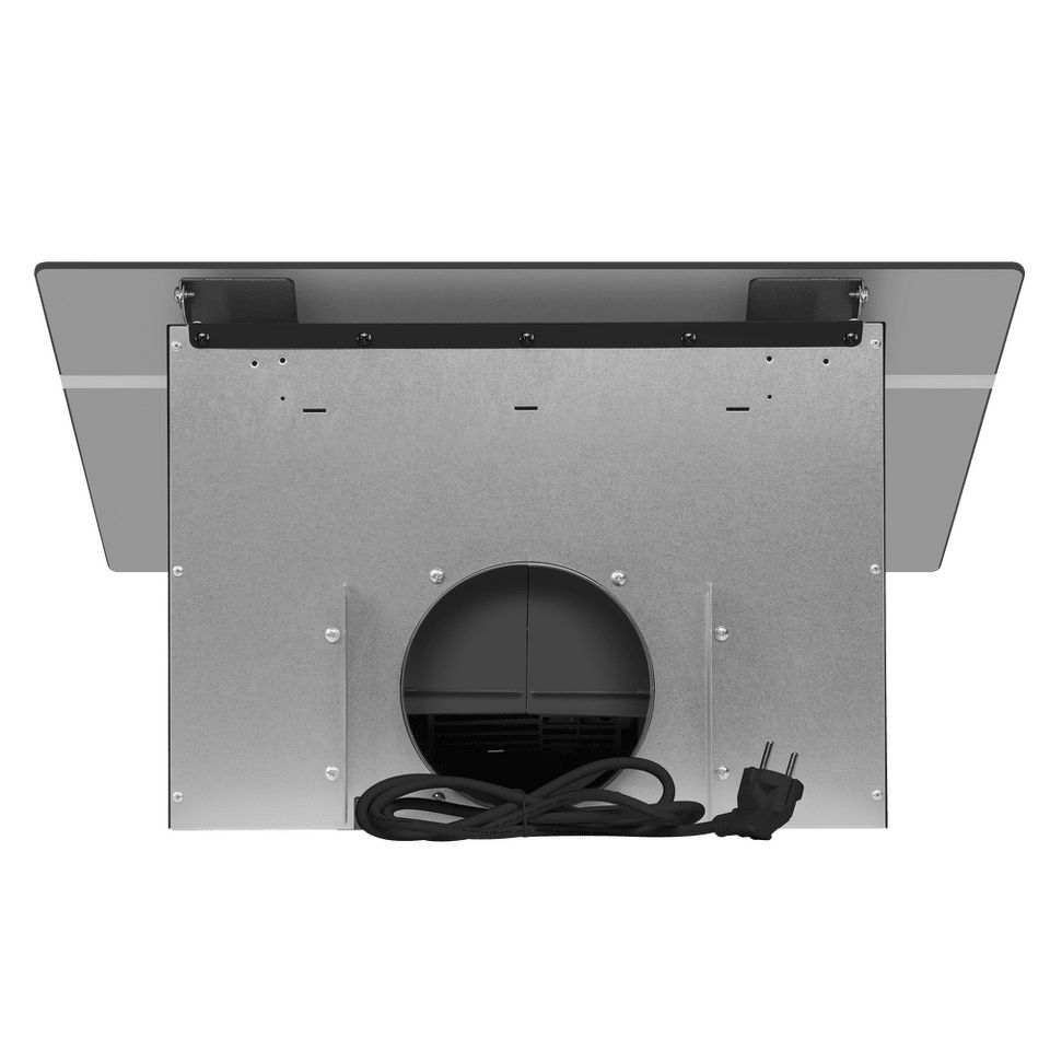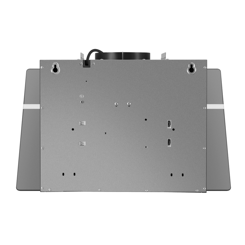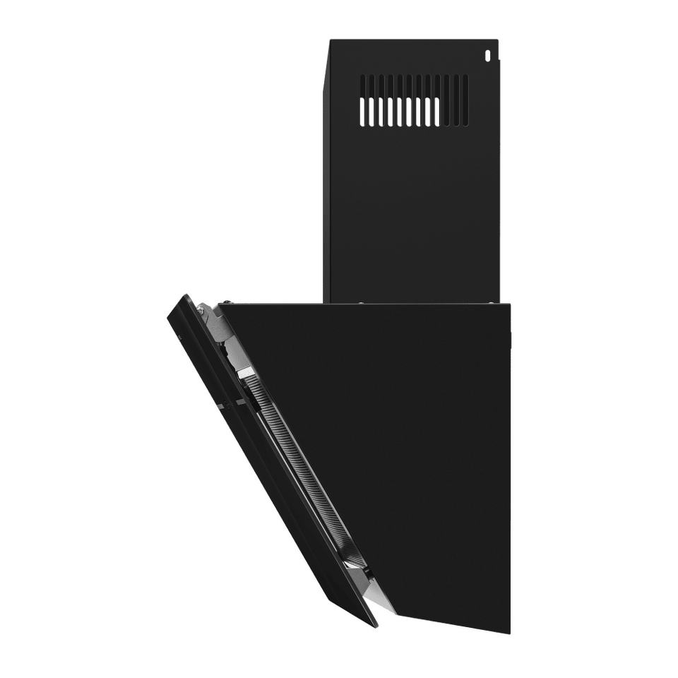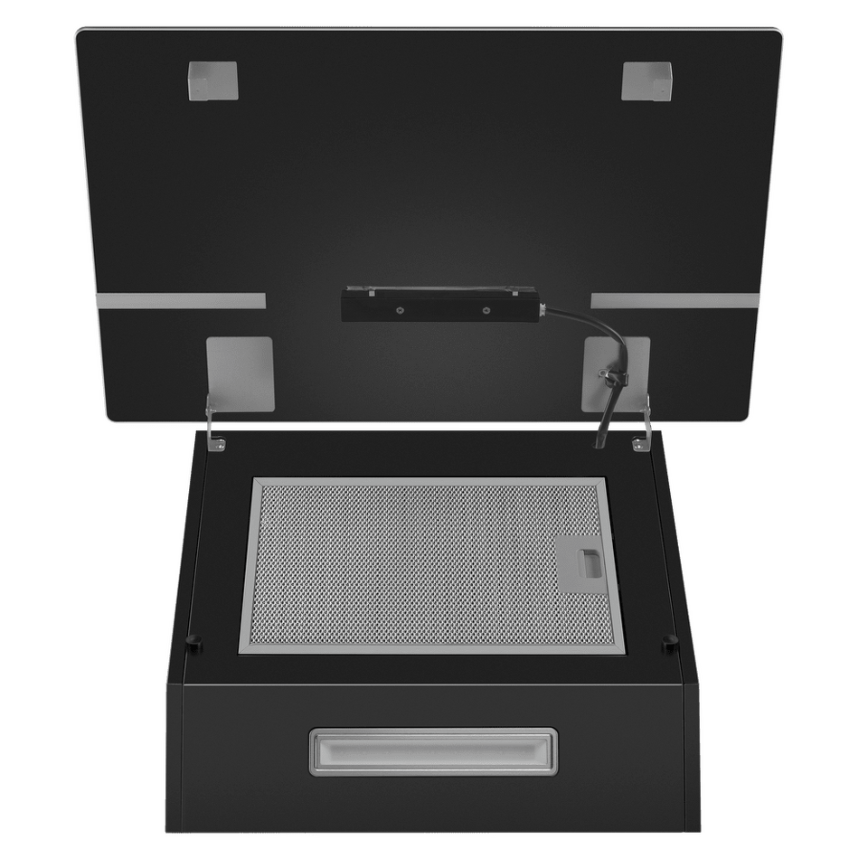 Корпус сделан из эмалированной стали. Фасад выполнен полностью из закаленного стекла . За ней скрыт алюминиевый жироулавливающий фильтр, который легко снимается и полностью разбирается для чистки. Загрязненный воздух втягивается по периметру откидной панели.