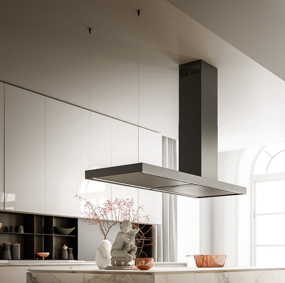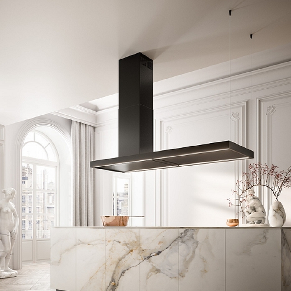 Дизайн: Вытяжка Falmec ELLE ISOLA 175 выполнена в черном цвете и прекрасно дополнит собой любой современный интерьер. Модель потолочного монтажа подходит для установки над кухонным островом.