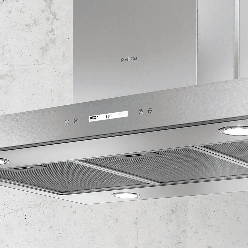 Дизайн. Островная вытяжка ELICA SPOT PLUS ISLAND IX/A/90 шириной 90 см монтируется к потолку. Модель выполнена в цвете «нержавеющая сталь» и может быть интегрирована в любой современный кухонный интерьер. Фасад дополнен информативным дисплеем, на котором отображаются установленные настройки.