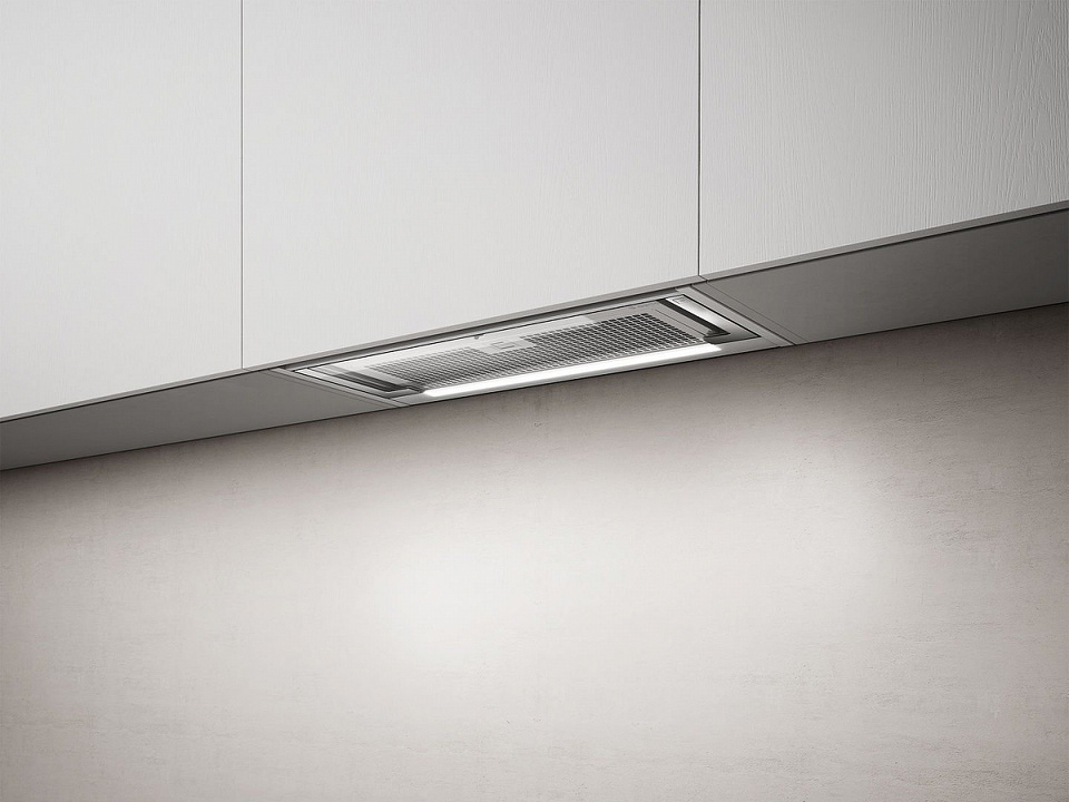 Дизайн. Встраиваемая в подвесной шкаф вытяжка ELICA GLASS OUT IX/A/90 имеет увеличенную ширину 90 см. Дизайн дополняется выдвижным козырьком из прозрачного стекла, который открывает эффективный алюминиевый фильтр, а также защищает от брызг, появляющихся во время приготовления пищи. Экономичная подсветка STRIP LED улучшает обзор над варочной поверхностью и потребляет всего 7 Вт электроэнергии.