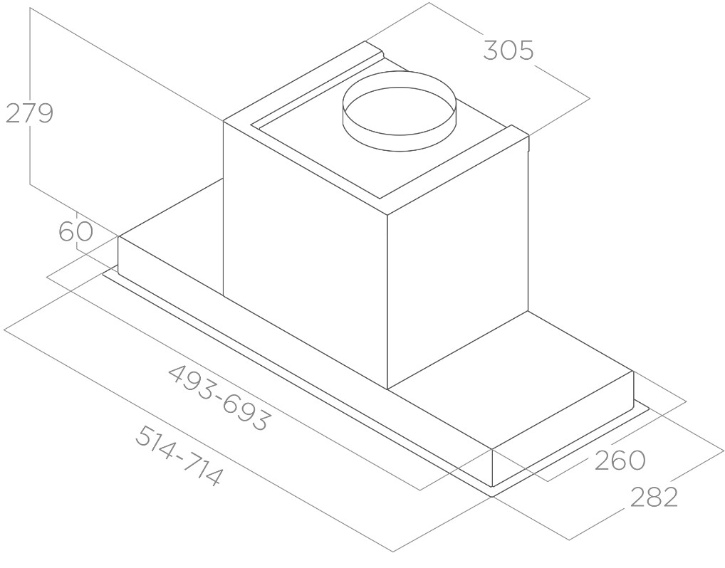 Управление вытяжкой осуществляется электронно, с помощью удобных кнопок. В наличии три скорости работы, а также интенсивный режим для быстрого и эффективного удаления запахов. Отдельно стоит отметить освещение: светодиодное STRIP LED, которое обеспечивает равномерное и яркое освещение рабочей зоны.