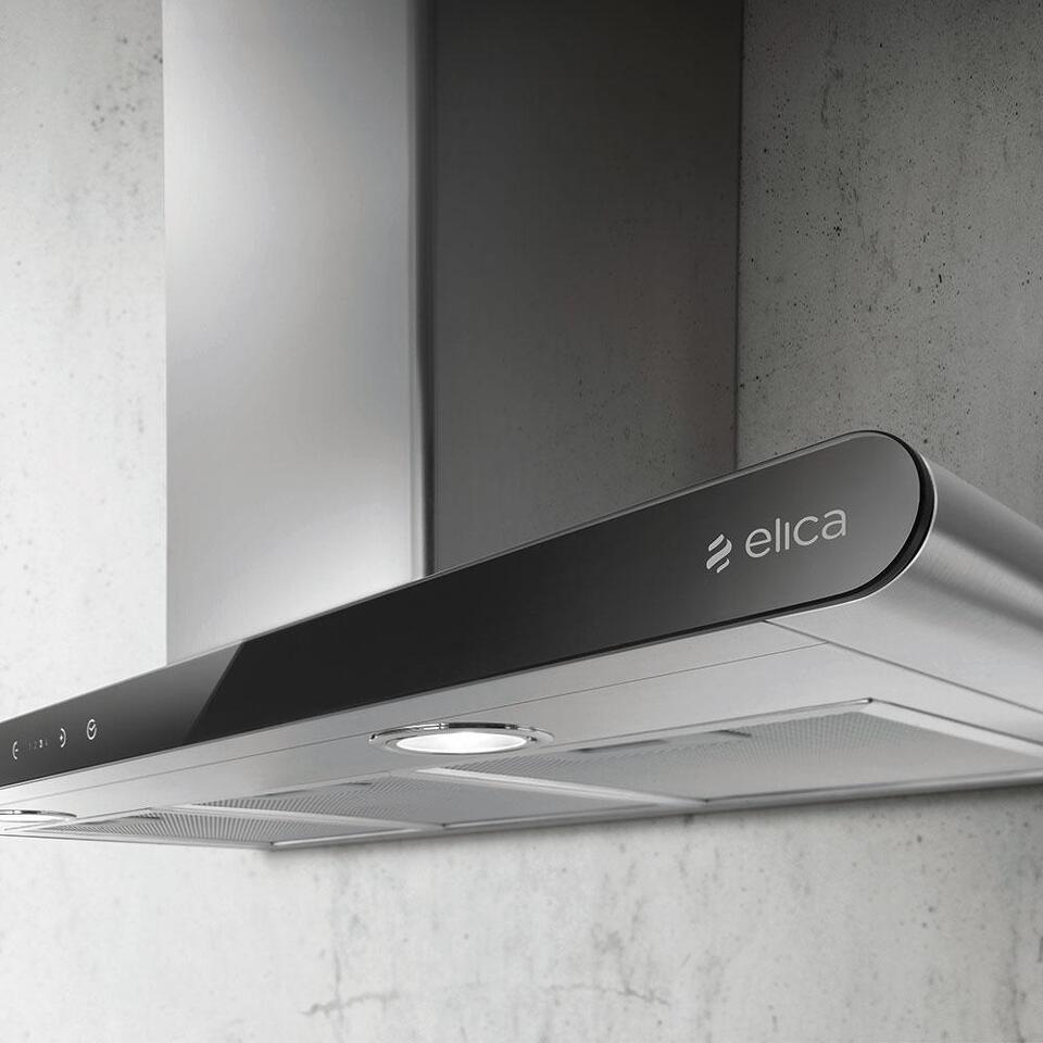 Дизайн. Настенная вытяжка ELICA GALAXY BLIX/A/80 с увеличенной шириной 80 см имеет простой геометричный дизайн. Модель выполнена в цвете «нержавеющая сталь» и может быть интегрирована в любой современный кухонный интерьер. Фасад дополнен вставкой из черного стекла, на которой располагается панель управления.