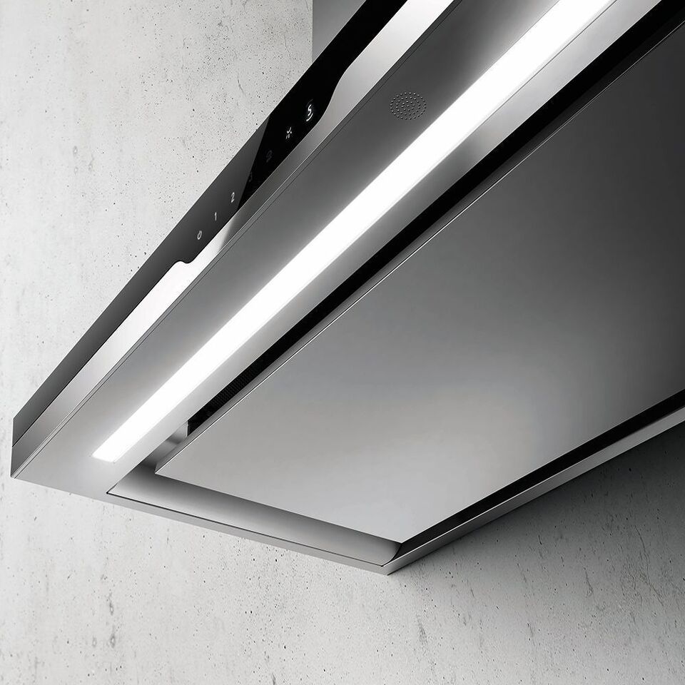 Дизайн. Вытяжка ELICA METEORITE IX/A/120 представляет собой идеальное сочетание элегантности и эффективности. Сочетание черного стекла и полированной нержавеющей стали идеально подходит для любого интерьера кухни, идеально гармонируя с другой бытовой техникой. Подсветка расположенного на стекле управления touch control служит не только функциональным и удобным элементом, но и изысканным дизайнерским решением.